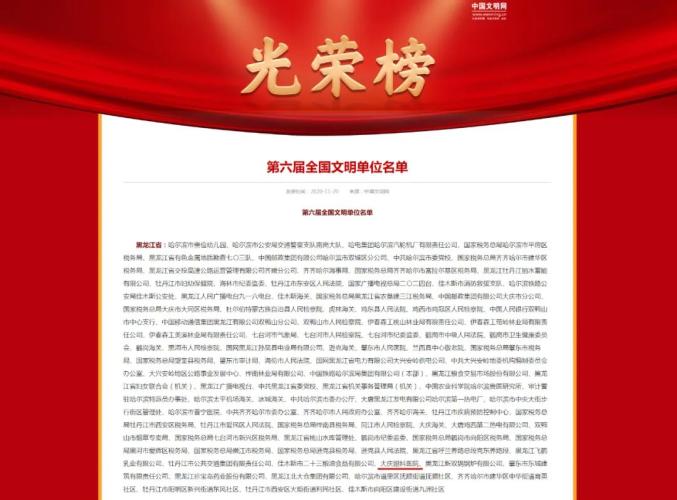 原标题:《优秀!大庆眼科医院荣获第六届全国文明单位》