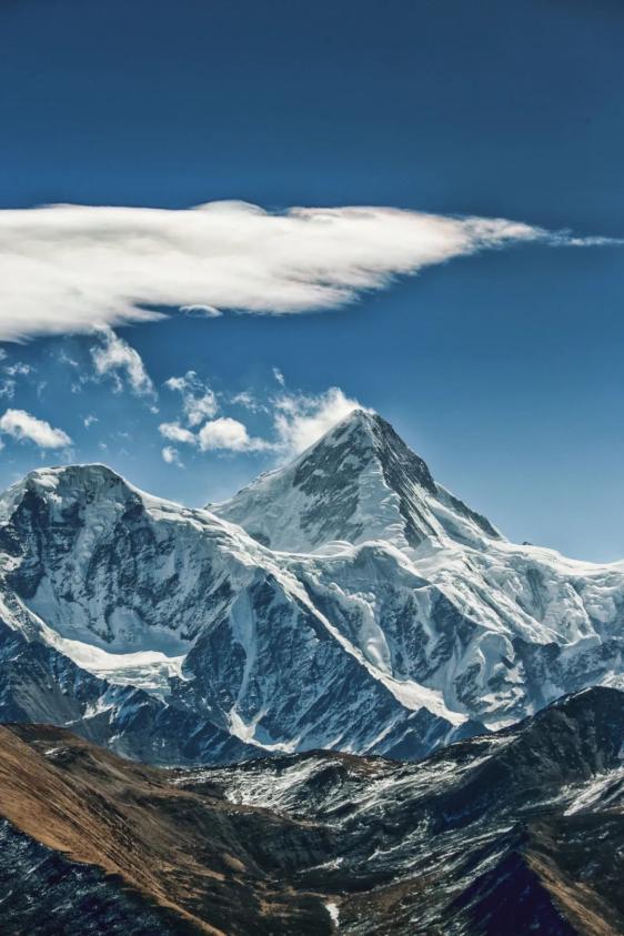由于贡嘎冰川相对温暖、湿润,又被称作“海洋型冰川”——它们积累和消融迅速,对山体的侵蚀、搬运能力强,将贡嘎“切”成锋锐的“金字塔形”山体——挺拔陡峭,一如康巴汉子线条硬朗、棱角分明的面庞。