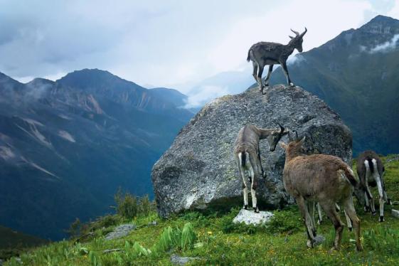 她是四川海拔最高的地方,大部分地区,如最近爆红的理塘县,都位于横断山区,四川第一高峰、海拔7556米的贡嘎山就坐落在甘孜。在这里,入目皆是雪山、冰川、高寒草原,四川的吉祥物大熊猫少见踪迹,反而有岩羊、雪豹,乃至藏原羚、藏野驴等“高原精灵”在此出没。