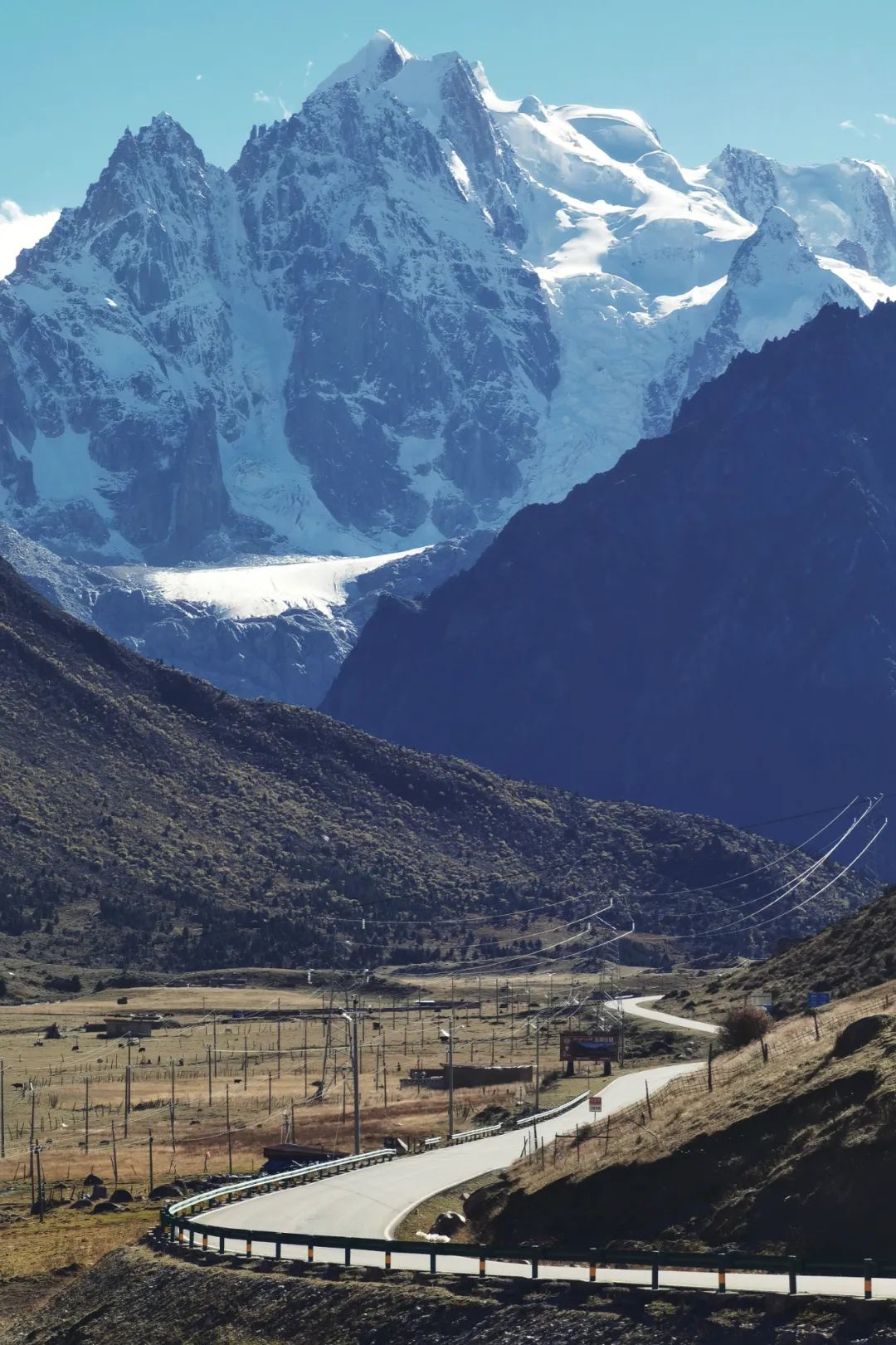 西北侧的雀儿山,是川藏线上的著名险关,最高峰海拔6168米,雅砻江支流玉隆河、金沙江支流夕河与麦宿河,在山下一南一北奔腾而过。这里曾经坐拥川藏公路上的最高点——海拔5050米的雀儿山口,今天则打通了一条长达12千米的隧道,10分钟即能翻越“川藏第一险”。