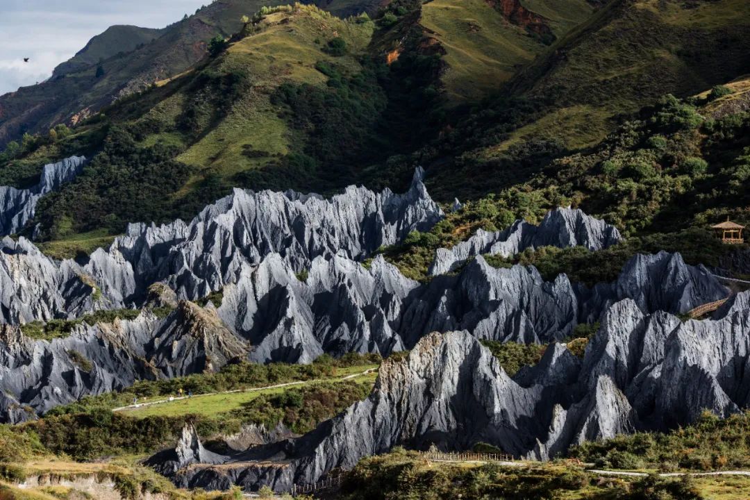 在道孚,墨石公园的土石林层层叠叠、千姿百态,在不同的季节会呈现出不同的颜色,像是走进了科幻世界,置身于外星球的魔幻地貌之中。