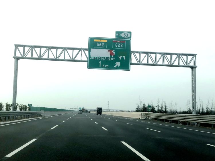新机场尚未开放,高速沿线指示牌仍遮挡着