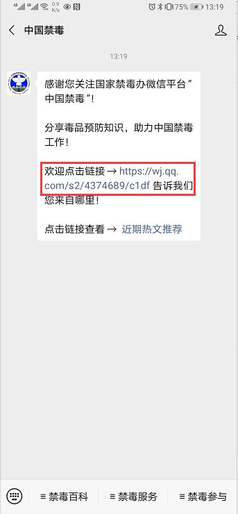 一、“中国禁毒”微信公众号新用户订阅和完成问卷调查方式: