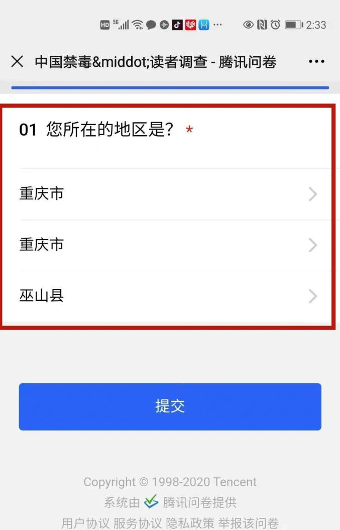 第二步:点击红色框内按钮,填写归属地问卷调查。