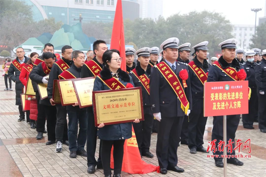 12月2日是第九个全国交通安全日,今年的主题是“知危险会避险 、安全文明出行”。上午,渭南市2020年“12.2全国交通安全日”启动仪式在市中心广场举行。渭南市副市长、市交安委主任、市公安局局长杨建琦宣布活动启动。渭南市政府一级调研员、市交安委副主任梁顺利主持。10个渭南市文明交通先进集体和12个先进个人在活动现场受到表彰。