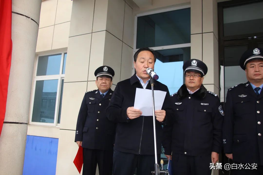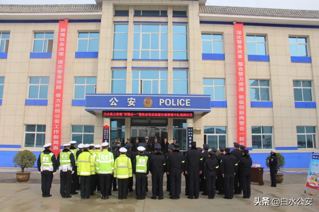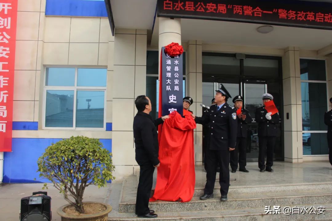 12月2日,在第九个全国交通安全宣传日来临之际,白水县公安局在史官派出所举行“两警合一”警务改革启动暨交通管理中队揭牌仪式。