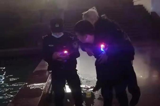 临近水池,民警们才看清楚原来一名白发老太太,脸朝下,整个身体趴在水中,不停挣扎扑腾,却怎么也站不起来。见情况危急,朱绍平和刘正中毫不犹豫,立即跳进冰冷的水池,合力将老太太抱住,一把拉出水面,张斌则趴在水池边的石台上,小心翼翼地接过老人。“喷泉池水深大约有七八十厘米左右,因为老人是面部朝下,所以呛了几口水,但精神看起来还不错。”朱绍平说,刚上岸时老太太有些体力不支,脸色发白,身体瑟瑟发抖,不过稍微缓过神后已无大碍。见到全身也已湿透的民警们,老太连声道谢。