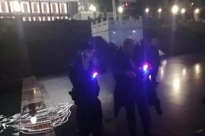 11月26日傍晚6点42分,渝中区公安分局特警支队三人快反处置小组成员朱绍平、刘正中、张斌正在大礼堂人民广场附近执行巡逻任务。“当时天已经全黑了,可能天气阴冷的缘故,广场上的人并不多。”朱绍平说,当他们巡逻至广场旗杆旁的喷泉水池附近时,突然听到有水扑腾的声响,趁着夜色扭头一看,只见水池中仿佛有人正在挣扎,三人立即跑了过去。