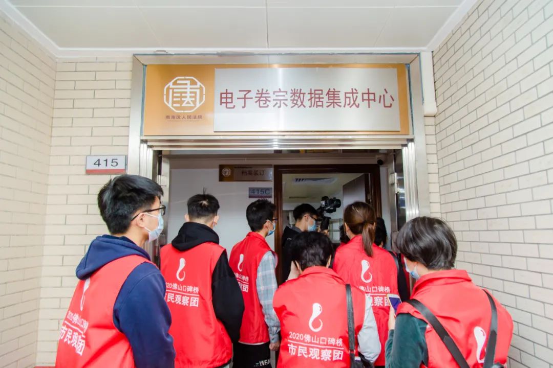 昨日上午,佛山口碑榜市民观察团走进南海区人民法院(以下简称“南海法院”),参观诉讼服务中心、云柜、电子卷宗数据集成中心、审判庭等,了解南海法院电子卷宗随案同步生成工作情况。