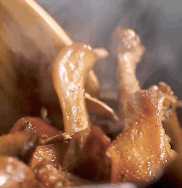 姜母、番鸭彼此浸润。鸭皮粘糯,姜味浓烈,满是胶质,不注意,一口能粘着上牙膛。