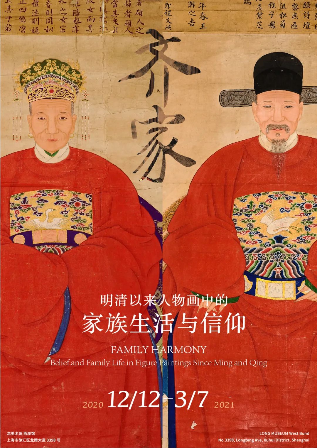 2020年12月12日至2021年3月7日,龙美术馆(西岸馆)将引进由湖南省博物馆策划,联合长沙大观文化共同呈现的“齐家——明清以来人物画中的家族生活与信仰”专题展,以60余件明清以来的人物画及相关展品,为广大群众呈上一个以“慎重追远”、“修身齐家”、“敬天爱民”等中国传统文化为核心内容的展览,迎来吉庆的新岁。