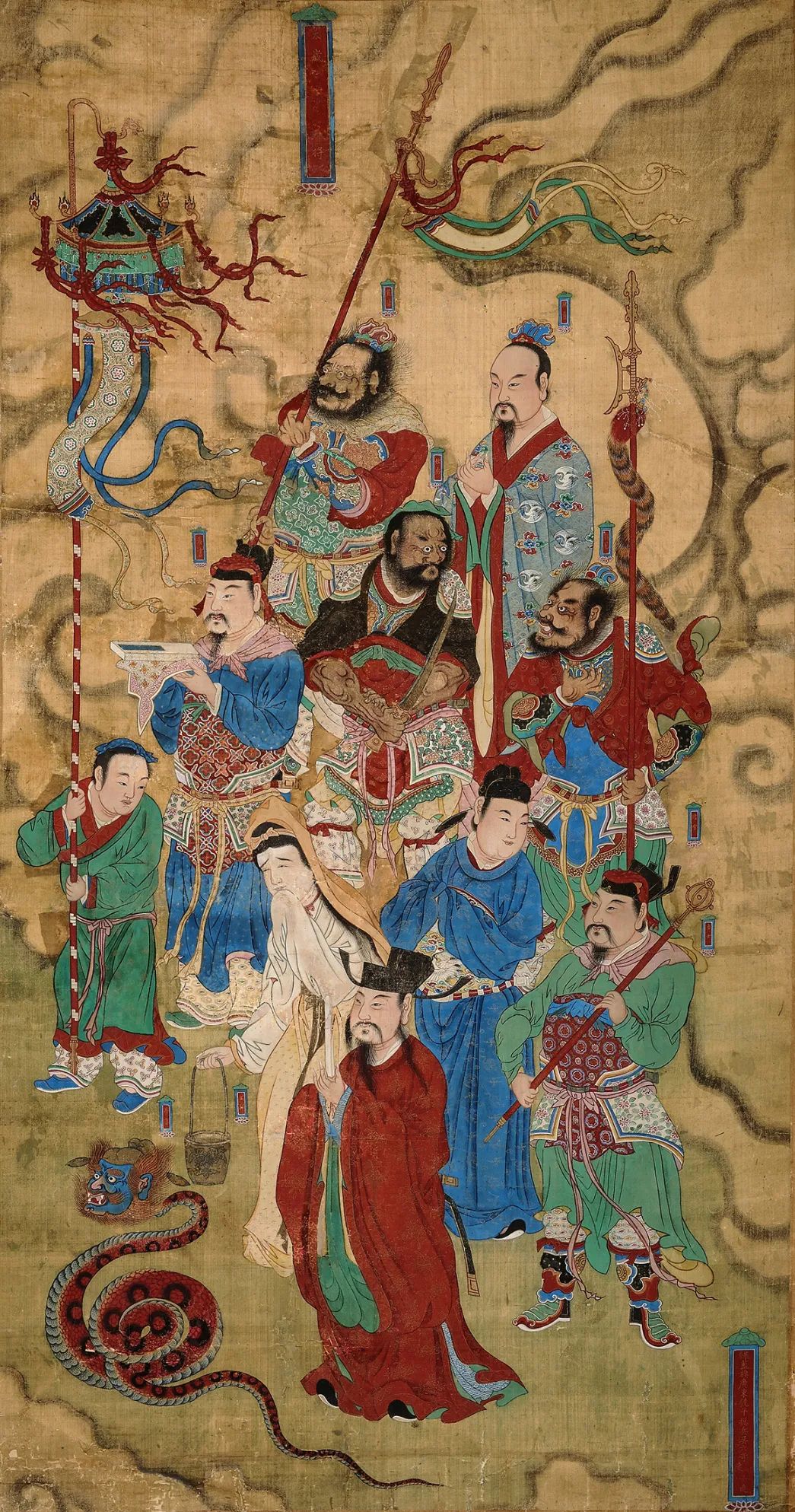 风俗人物和道释神仙画传统由来已久,其中不乏名留画史的杰作,如张择端的《清明上河图》、武宗元的《朝元仙杖图》等,凝结着中国人的生命意识、审美趣味、伦理情感与宗教情怀。明清以来,风俗人物和道释神仙画内容变得更加世俗与多样化,增加了节庆、赐福、贺寿等不常见的题材,融入到社会生活的各个层面,反映了民众的泛神信仰,以及对人生美好、家国兴旺的祝福与情感寄托。