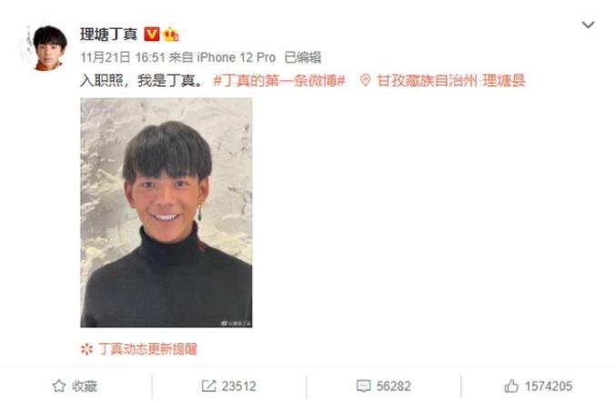 11月21日 @理塘丁真 发布第一条微博“入职照,我是丁真。#丁真的第一条微博#”