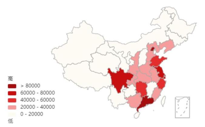 而在所有微博信息中,提及最多的地区是四川、西藏两个地方,其他还有山东、云南、北京、陕西、新疆、湖北等地区。