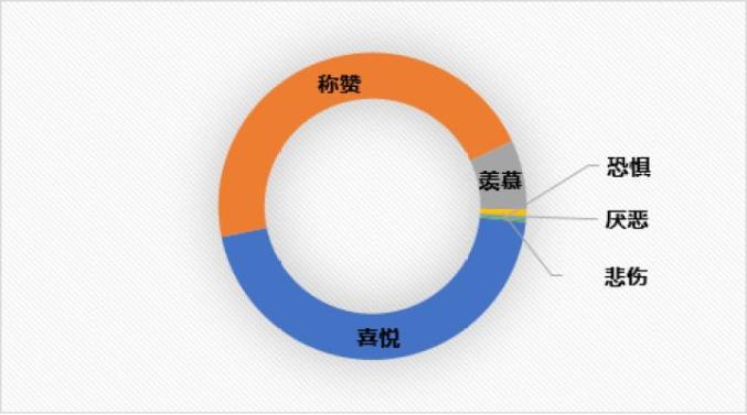 针对此次舆论现象,我们用大数据系统综合分析此次网友们的情感和情绪时可以发现,喜悦和称赞的占比超过98%,全网充满愉悦、积极、正能量。