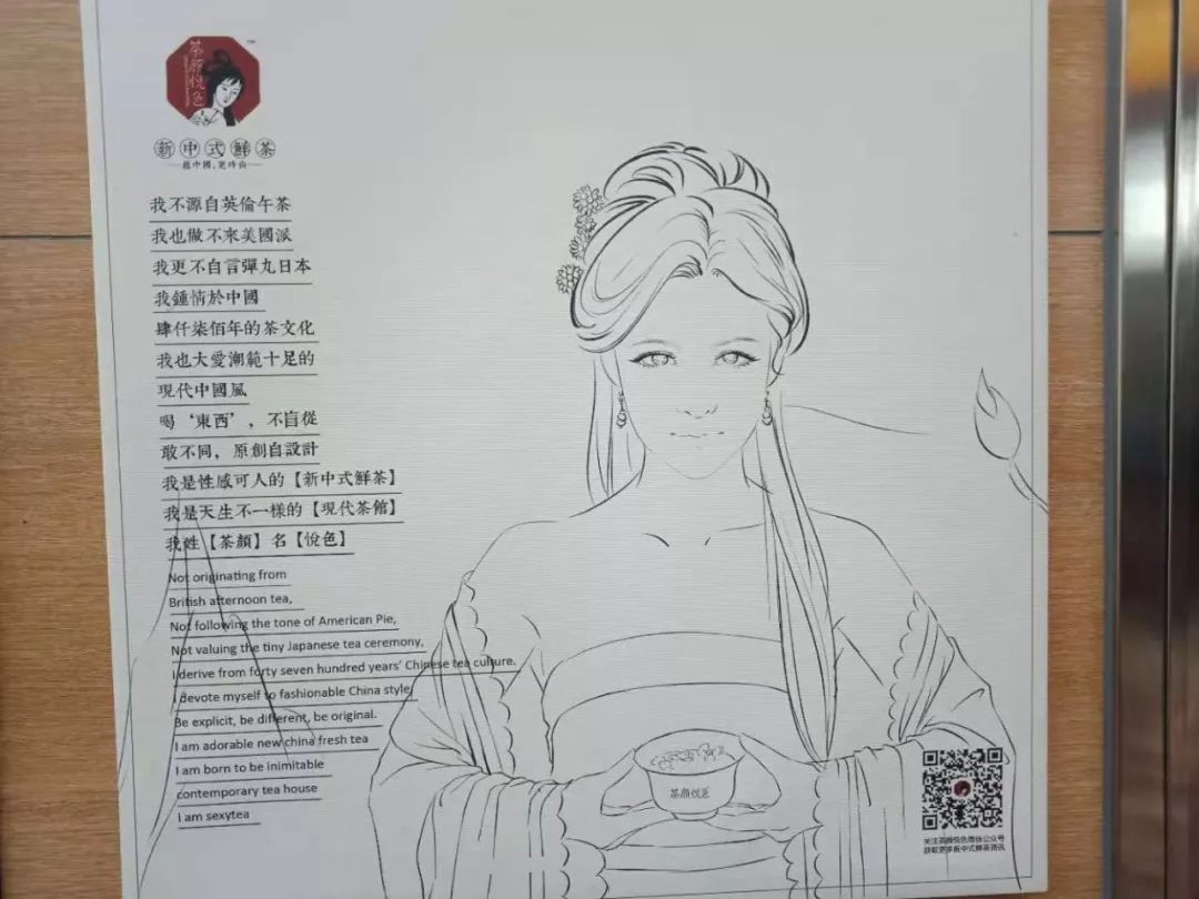 少女是茶颜悦色在市场中的定位,而在这一段繁体字的宣言下,是相应的英文,给人古朴但又国际化的感觉,国风而又不失潮流。