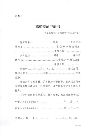 3.在婚姻登记机关现场填写的《离婚登记申请书》(附件1)。