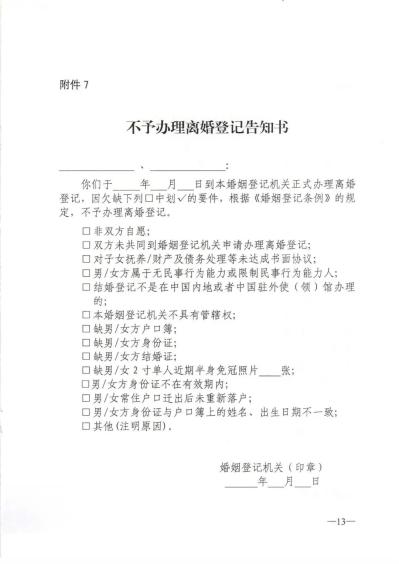 (二)做好配套衔接。要加快推进本地区相关配套制度的“废改立”工作,确保与本《通知》的规定相一致。要做好婚姻登记信息系统的升级,及时将离婚登记的申请、撤回等环节纳入信息系统,确保婚姻登记程序的有效衔接。