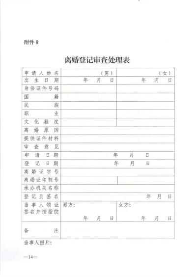 归档材料应当增加离婚登记申请环节所有材料(含附件1、4、5)。