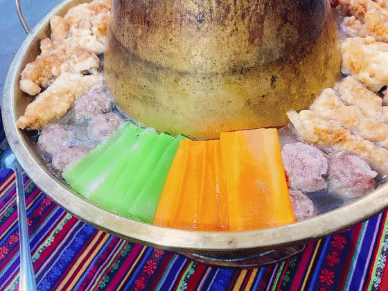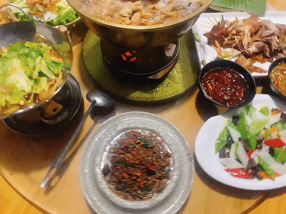 梁河锅子是一道风味独特的菜肴。锅子讲究慢火慢煮,因而菜味鲜甜醇和。肉圆、火腿、泡皮、蛋卷等上好食材用火锅小火精心慢煮,即成一色香味俱佳的锅子。梁河木瓜鸡的锅子一定会让你尽兴而来,满意而归。