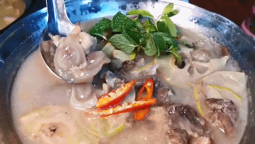 这木瓜鸡汤色金黄,气味儿喷香。先喝一碗木瓜鸡汤,酸香味醇,木瓜的酸中混合了鸡汤的纯鲜,食之胃口大开,再吃一口肉质紧实的鸡块,弹牙爽口,对吃货来说简直不要太满足。