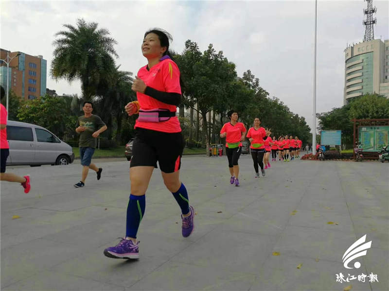 自那以后,会姐也和不少工友一起,加入了映月跑团,每天清晨相约一起跑步。会姐说,虽然有打球的运动底子,但刚开始跑步时,800米都跑不完就气喘吁吁了,中途得停下好几次。“刚开始跑真的挺痛苦的,又要早起,又要长跑,很多人都吃不消,但是我们互相鼓励,互相鞭笞,每天语音电话催起床,每日多跑100米,慢慢就坚持下来了。”会姐说,跑步其实不难,挺过去最难那段时间,反而每天不跑步就不舒服的。现在每个工作日,会姐都会跑上5、6公里才上班,周末更是会跑10公里或者半马(21公里)。