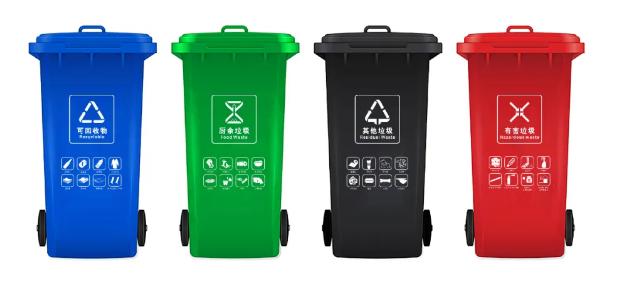 12月1日,天津实现生活垃圾分类工作。按照《天津市生活垃圾分类指导目录》,天津市生活垃圾分类实施“四分类”标准,分别为厨余垃圾、可回收物、有害垃圾和其他垃圾。厨余垃圾投放容器一般采用绿色;可回收物投放容器一般采用蓝色;有害垃圾投放容器一般采用红色;其他垃圾投放容器一般采用黑色。()