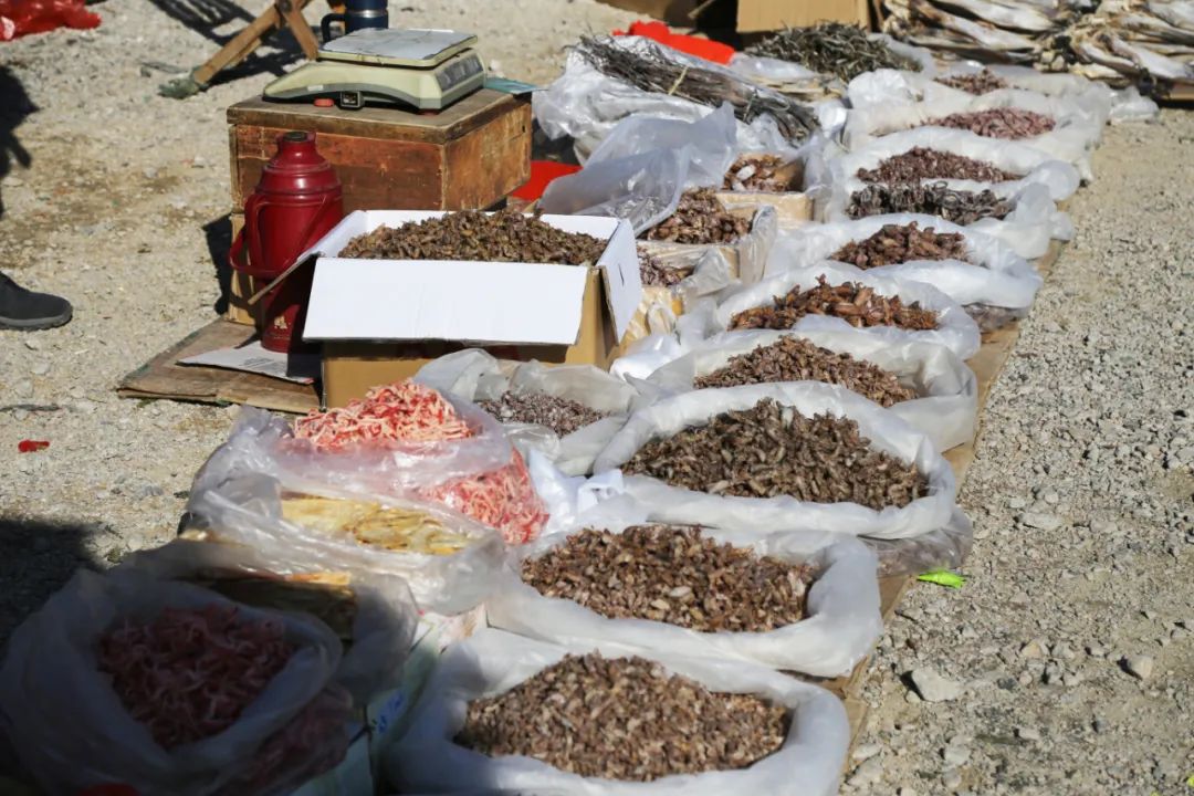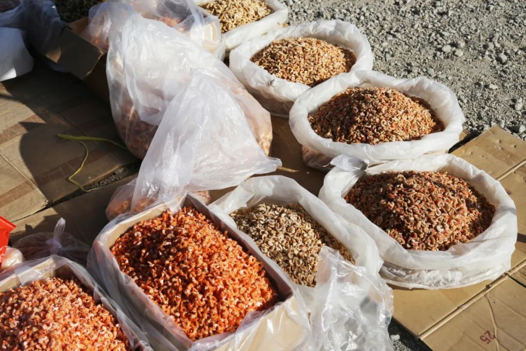 俗话说靠海吃海。日照经开区的大集上,怎么少得了海货。鱼虾贝类,新鲜个大,海产品种类齐全。虾皮、虾米、鱼干等海鲜干货也应有尽有,很受市民欢迎,买上一点虾米等干货,当做零食吃,好吃又营养,感觉也不错。