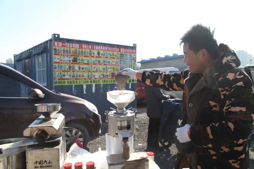 倒入一碗芝麻,经过这个机器加工之后,出来的是香气浓郁的芝麻酱,这诱人的香味顺着风向飘到很远,吸引了不少市民前来购买。在这个冬天里,涮个火锅,蘸上点芝麻酱,既能驱寒,烦恼也能一扫而光。“以前这里只有小市,夏天人还多一点,冬天天冷,人就少了,现在有集了,增加了人气,我们也增加了收入。”摊主陈祥伟说,有了这个大集之后,他每次逢集就来赶集,他制作的香油和芝麻酱销量都不错。