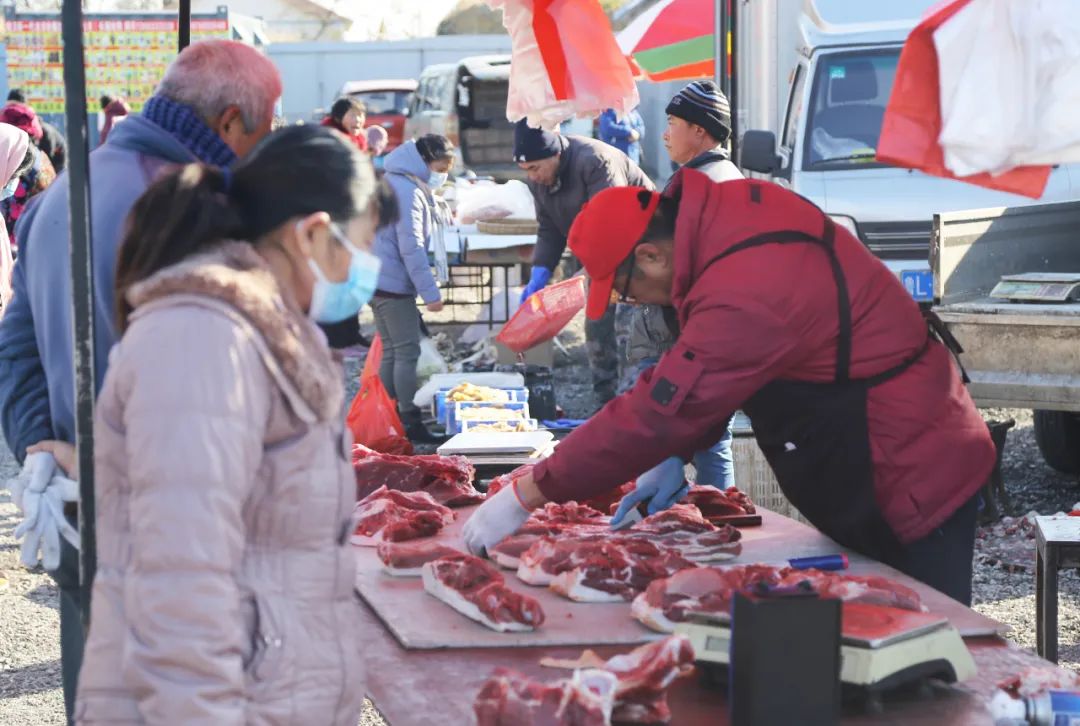 大集上好吃的东西多着呢,像撒子等各种零食,让人垂涎欲滴。还有那刚出锅的猪头肉,还冒着热气,看着就忍不住流口水。