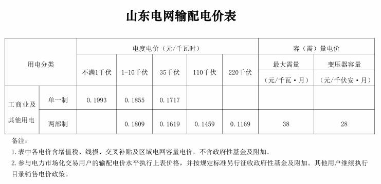 山东电价调整!2021年1月1日起执行!(附最新电价表)