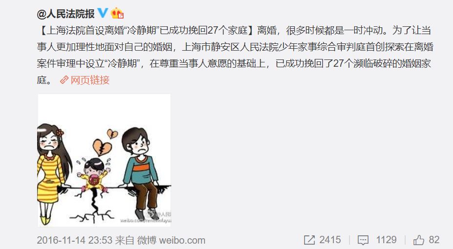 上海法院也颇为自得地晒过“离婚冷静期”挽回婚姻的奇效。