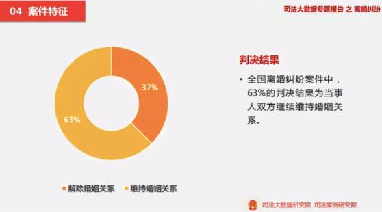 但最后的结果是,63%的案件判决当事人双方继续维持婚姻关系。这说明什么?