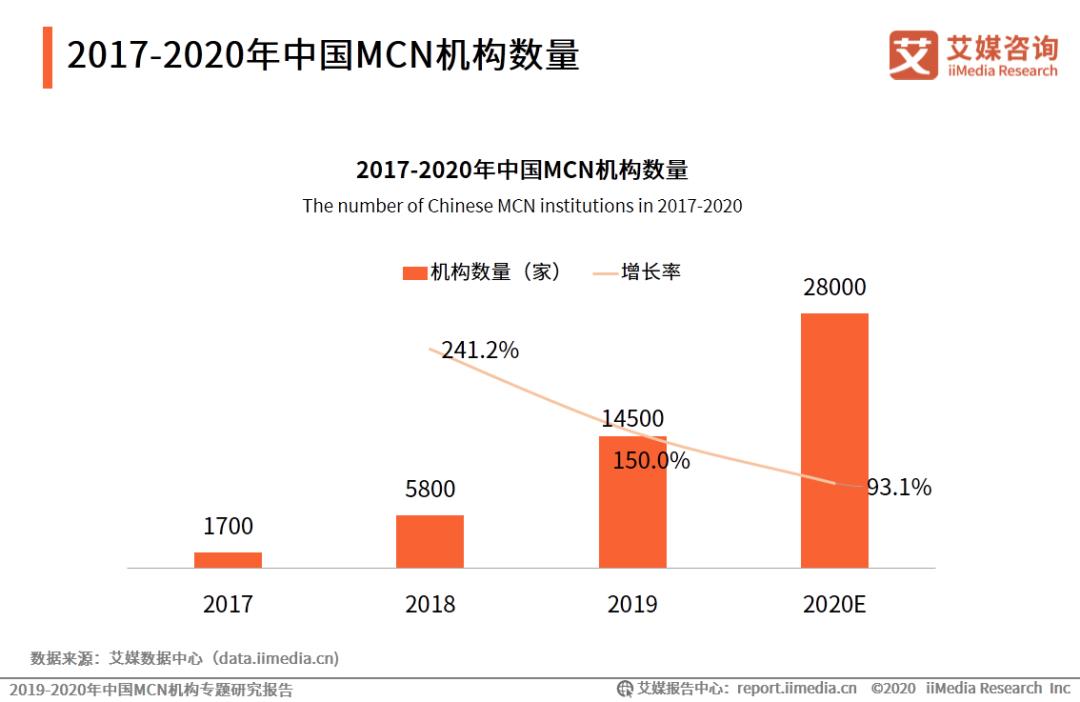 公开资料显示,如今,国内MCN机构数量已经超过两万家,90%以上的头部网红都已经签给MCN公司,或成立了自己的MCN公司,MCN已经逐渐成为网红和主播不可或缺的合作伙伴。随着MCN行业红利逐渐显现,预计今年中国MCN市场规模将会达到245亿元。