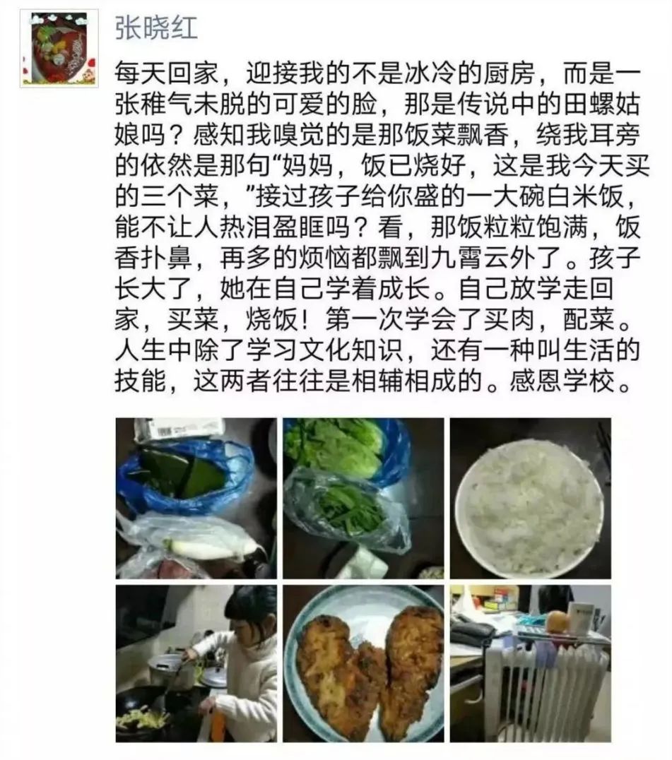 从洗菜、切菜、到做饭,不慌不忙,井井有条,感动得妈妈在朋友圈晒起贴心的女儿。