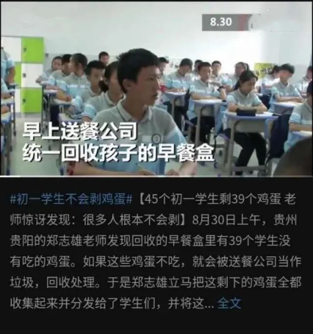 但鸡蛋发到学生手里后,情况却并没有老师想象中那么顺利。学生们依然没有吃,原因竟然是很多学生连蛋壳都不会剥。