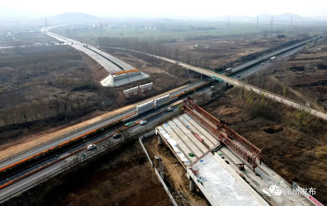 大徐昨天去了趟项目现场,徐州市外环(即“五环路”)公路(东南段)的重要节点——206国道徐州改线段跨连霍高速大桥进展顺利。