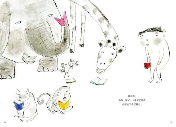 就这样,小鸟、猴子、大象和长颈鹿都学会了自己看书。可是,学会了识字的动物们,依然想听别人给自己讲的故事!