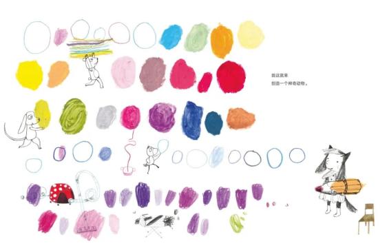 画画似乎是孩子与生俱来的本能。这本书讲述的,就是一个小女孩在无所事事的一天里,决定画一个属于自己的神奇动物的故事。