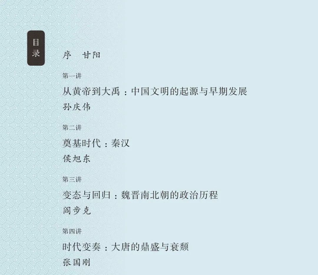 孙庆伟、侯旭东、阎步克、张国刚、邓小南、姚大力、刘志伟和杨念群等八位学者,依次对中国大的历史时期与核心王朝的发展进程和时代特点进行综括性的脉络梳理和问题分析。