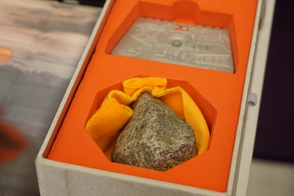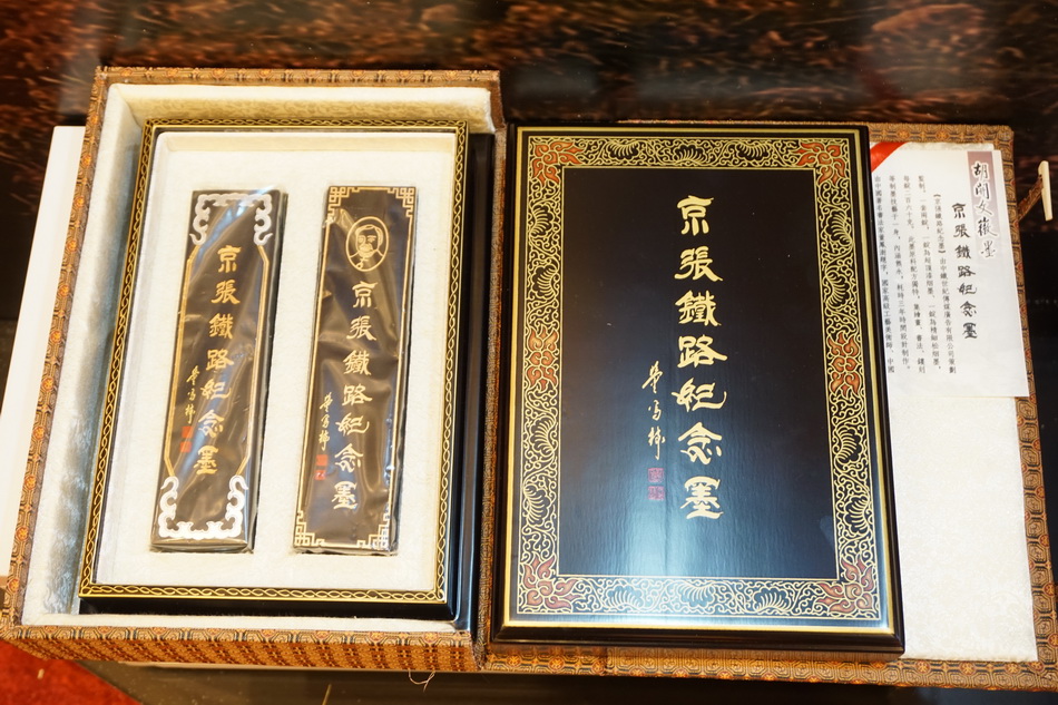 京张铁路也是谈到中国铁路必须要提及的,此次文创展中的一件京张铁路纪念牌和一块石砟(构筑铁路道床的碎石)显得很有纪念意义。澎湃新闻了解道,在2019年12月26日,该文创的设计师在京张铁路青龙桥站著名的人字形铁道的附近采集了石砟。而在此下方4米处,京张高铁新八达岭隧道在此穿过,隧道与当年詹天佑匠心设计的“人”字形铁道在110年的时空节点上构成了一个“大”字。而铁道旁的石砟也见证了铁路的百年沧桑。