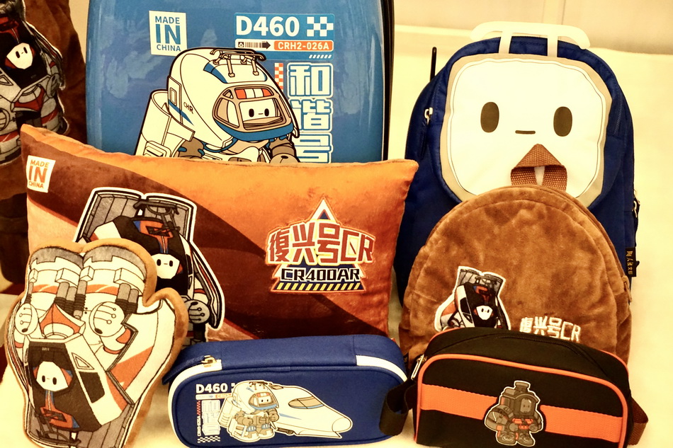 由中国铁路总公司牵头组织研制、具有完全自主知识产权、达到世界先进水平的动车组列车——复兴号动车组列车也是大家铁路文创设计中的主题。复兴号外观突出,采用了低阻力流线型头型,车体也平顺且车型线条优雅,现场多件文创作品都突出了复兴号的车头设计。
