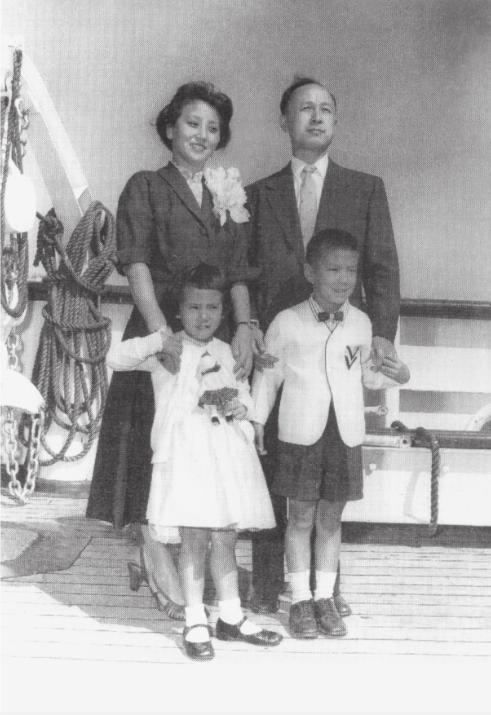 1955年钱学森一家启程回国时,在邮轮甲板上合影。