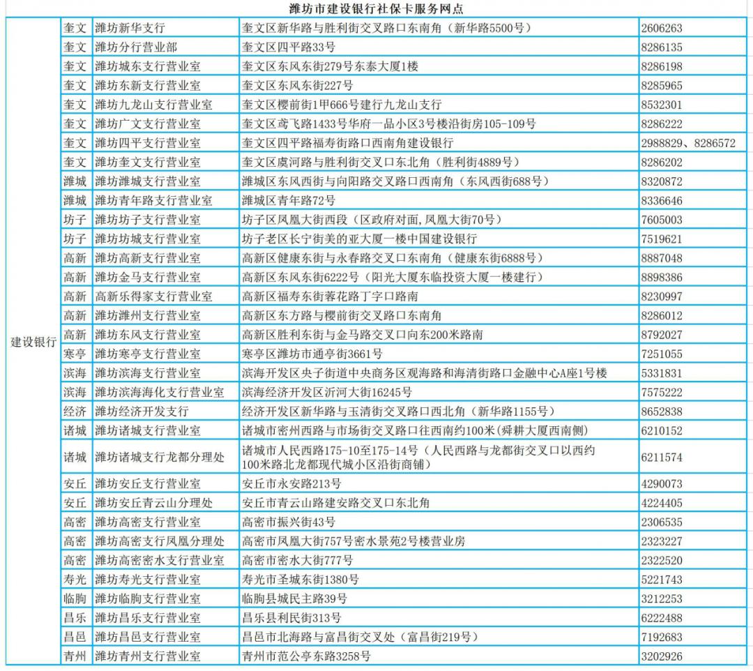 原标题:《速看!潍坊新增14个社保卡银行服务网点!(附全部网点)》