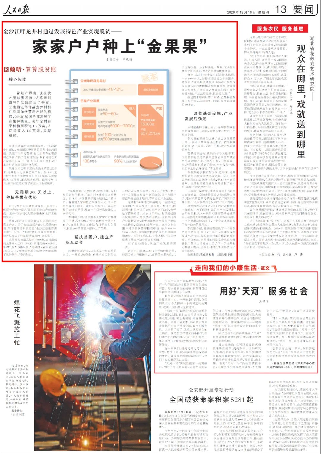 原标题:《《人民日报》聚焦丽江华坪:芒果飘香带动村民脱贫》