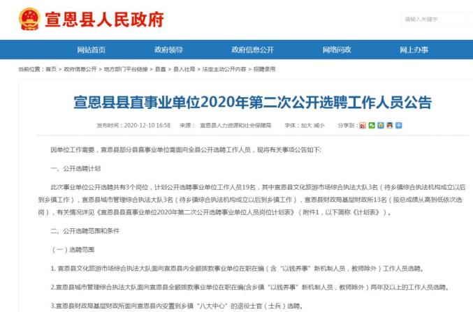 重磅!宣恩县县直事业单位公开选聘19名工作人员啦!