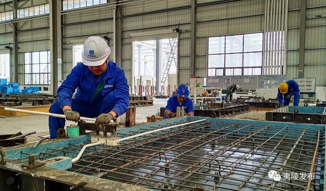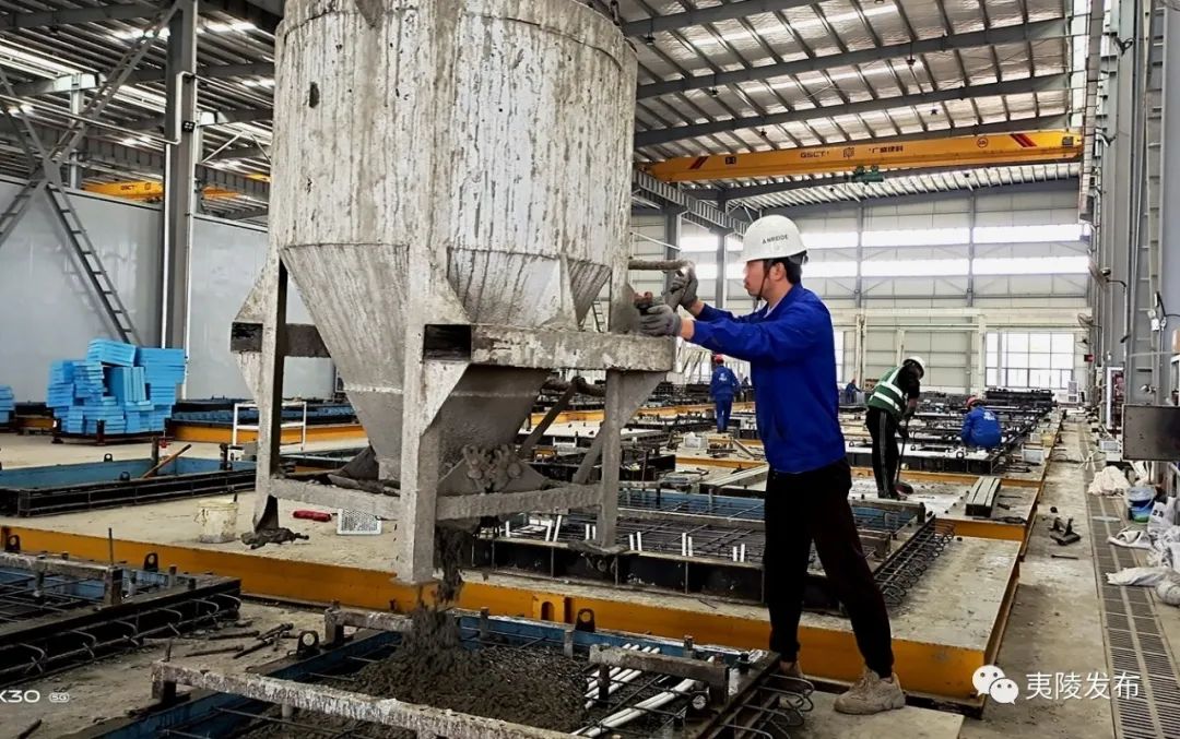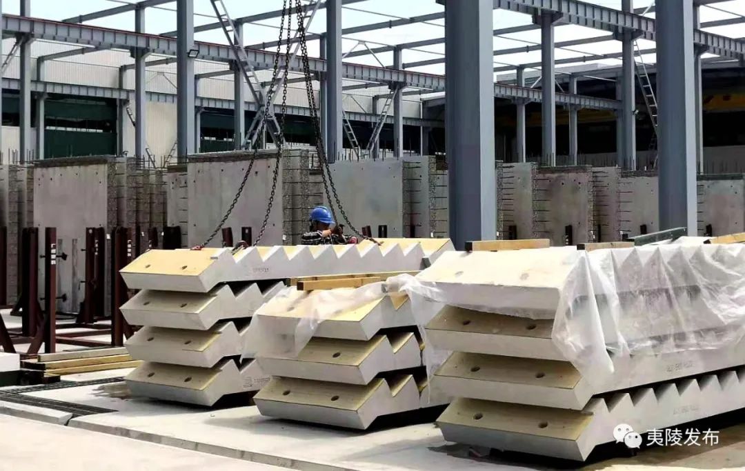 从园区大门过桥右转,顺着新修的柏临河大道前行,不出500米,便进入宜昌最大的装配式建筑生产基地——湖北广盛建筑产业化科技有限公司厂区。
