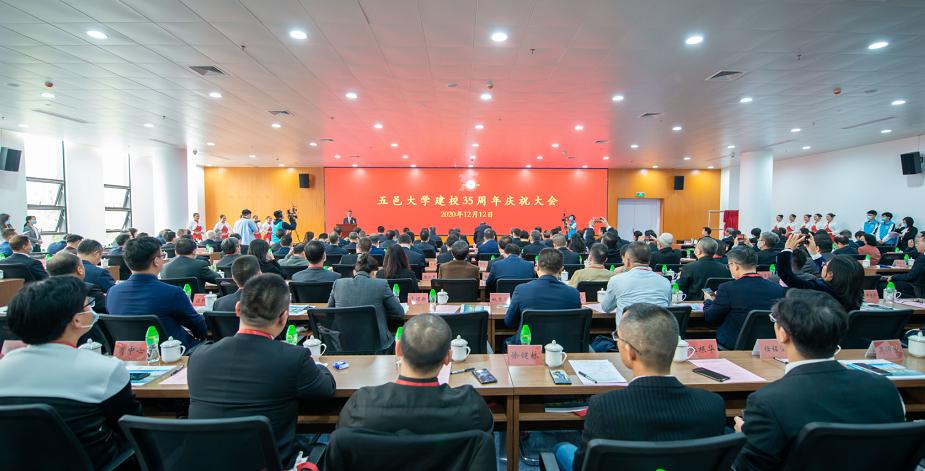 昨日,五邑大学举办庆祝大会,纪念建校35周年。市委副书记、市长刘毅,市人大常委会党组书记、副主任易中强,市领导郭建红、王长青、赵翠玲,以及五邑大学创始人、江门市委原书记、广州市原市长黎子流,五邑慈善会创会会长、江门市委原书记蒋进,江门市委原书记刘海等嘉宾参加活动,五邑大学党委书记张焜主持大会。