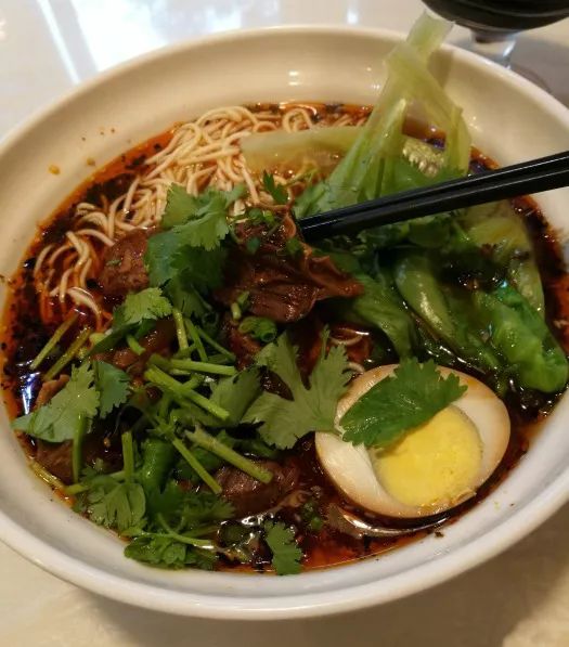 牛肉面是店里的另一个招牌普通红烧牛肉都是片状,但是能把块状的红烧牛肉炖得入味爽口则少之又少的。最重要的是,手工制作的面条,非常筋道。值得一提的是,店家免费的咸菜非常咸淡适中,非常解腻,跟浓郁的汤头可谓绝配。