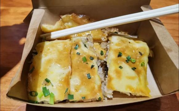 一份热干面到手,面的量不是很大但足够吃饱,看似平凡的一碗面混合特制的麻酱却在舌尖碰撞出了一片“烟火”,要减肥的小伙伴们可以请老板少放点酱料哦~如果说楚汉传奇古法三鲜豆皮的热干面是东邪,那里面的古法三鲜豆皮就是西毒,只要来上一口,就根本停不下来,